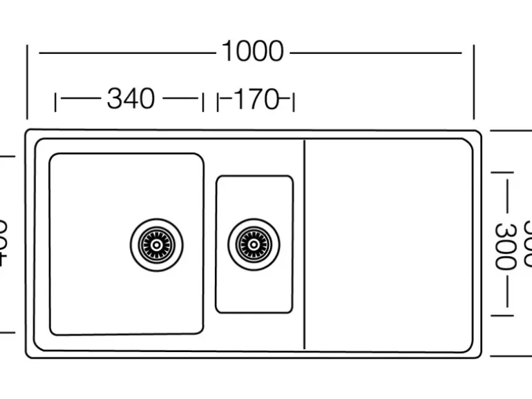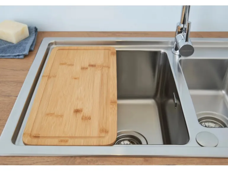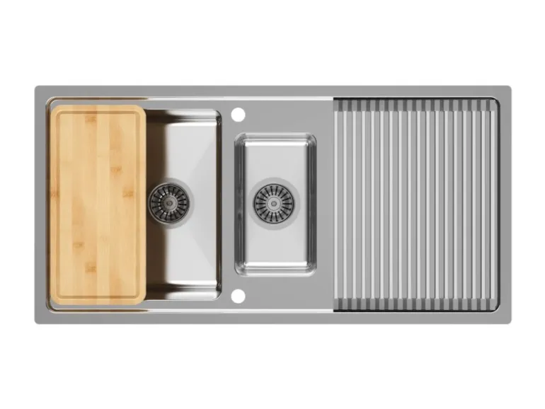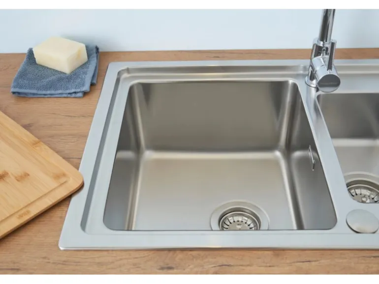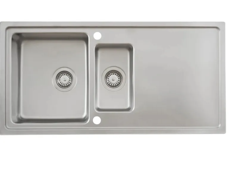 + Edelstahlspüle mit 2 Becken und Abtropffläche