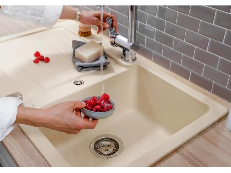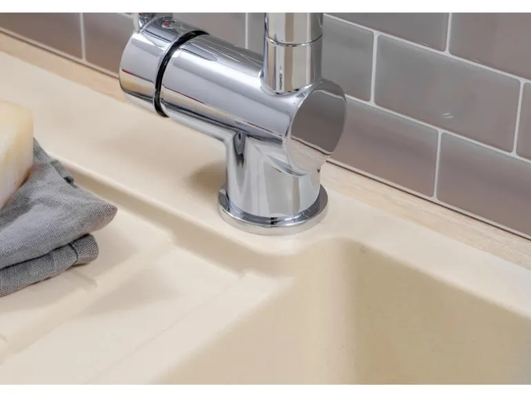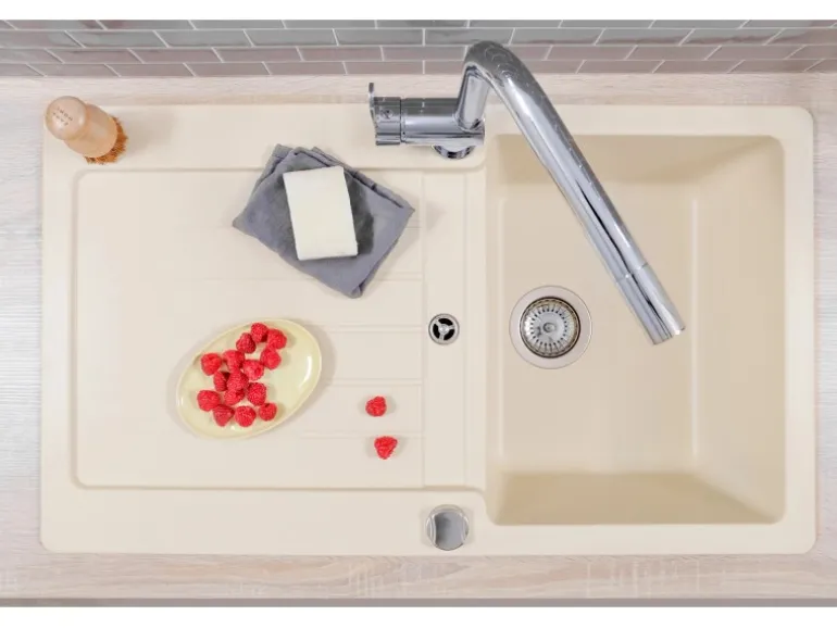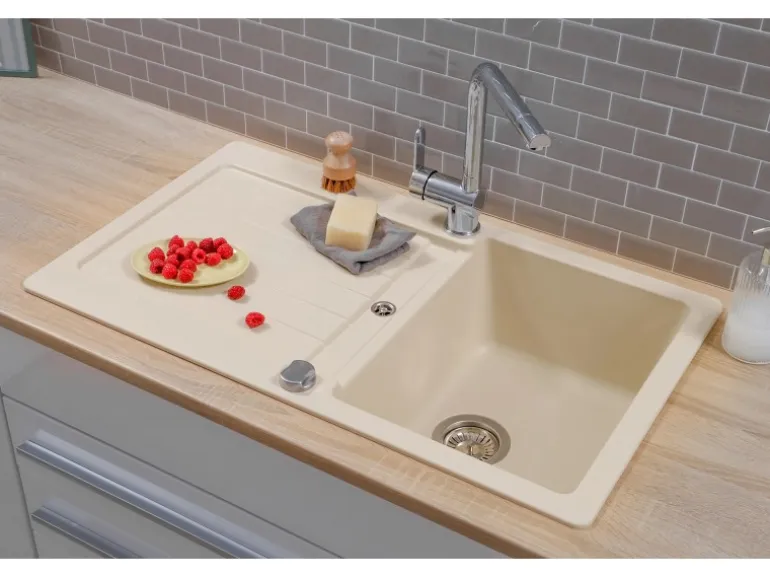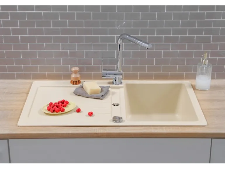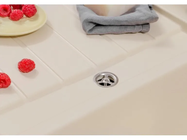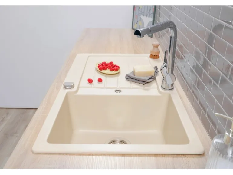 Die großen Radien der Ecken sorgen für eine einfache Reinigung und verhindern das Sammeln von Wasser. Gefertigt aus hochwertigem Massivgranit, ist diese Spüle besonders kratzfest, hitzebeständig bis 180°C und beständig gegenüber den meisten Haushaltschemikalien. Mit ihrer Unterschrankgröße ab 45 cm ist die Spüle sowohl für die Einbau- als auch Unterbaumontage geeignet und bietet höchste Flexibilität.