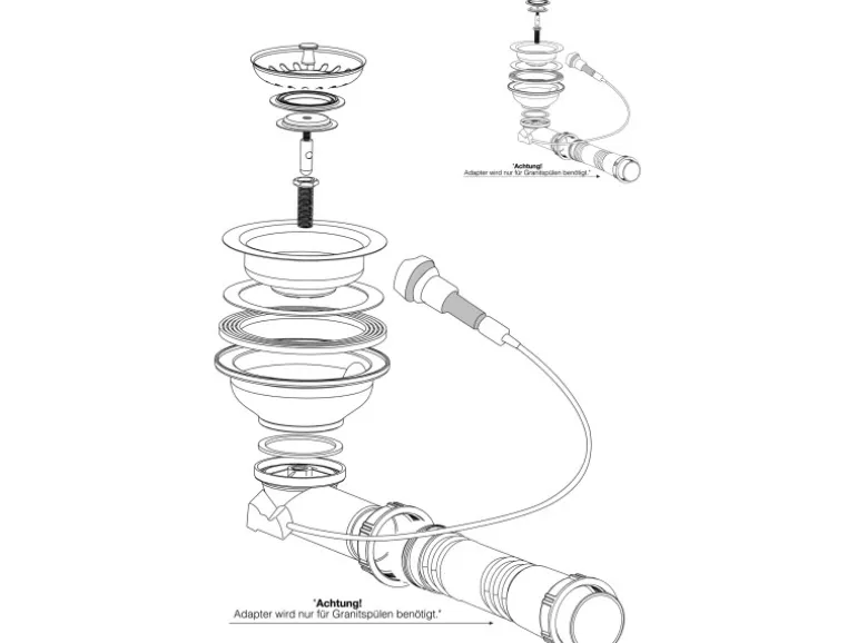 Als Ersatz für den bestehenden Siebkorb im Spülbecken bei 1-Beckenspülen auch für 1,5 Becken-Spülen verwendbar