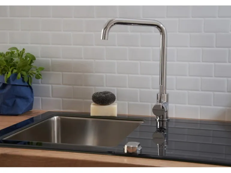Glas Spüle mit 1 Becken und Abtropffläche