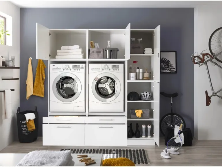 Mit ihrem zeitlosen Designkonzept fügt sich die Clara-Serie harmonisch in das Zuhause ein. Klare Linien und hochwertige Materialien schaffen eine angenehme Atmosphäre. Ob Wäsche waschen, Bügeln oder Organisation der Vorräte – die Serie Clara bietet vielfältige Möglichkeiten.