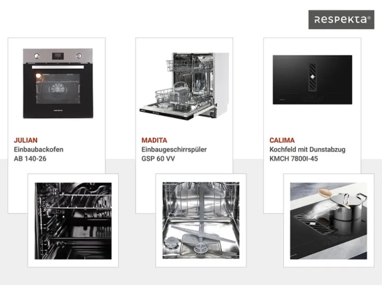 Inkl. Induktionskochfeld mit Dunstabzug EEK: A++ und Einbaubackofen EEK: A