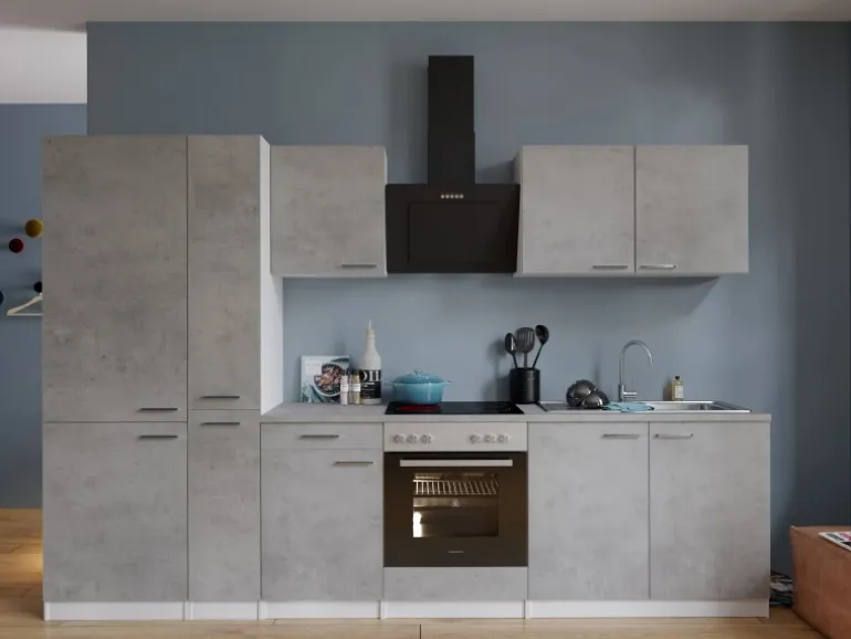 Erleben Sie zeitgemäßes Design und höchsten Komfort mit der Respekta Küche Malia. Die ausdrucksstarken Fronten in Betonoptik verleihen Ihrer Küche einen unverwechselbaren, modernen Charakter. Die Malia passt sich Ihren Bedürfnissen an: Ob als praktische Küchenzeile für kleinere Räume oder als großzügige L-Küche für offene Wohnkonzepte , Sie finden garantiert die perfekte Lösung für Ihren Grundriss. Genießen Sie den Komfort der Softclose-Funktion, die für ein sanftes und geräuschloses Schließen aller Schubladen und Türen sorgt. Die hochwertigen Metall-Griffe unterstreichen nicht nur das moderne Design, sondern gewährleisten auch eine angenehme Haptik und Langlebigkeit im täglichen Gebrauch. Respekta Malia: Wo urbaner Stil, Funktionalität und Anpassungsfähigkeit zusammentreffen. Gestalten Sie Ihre Traumküche , ganz nach Ihren Wünschen und Räumlichkeiten.