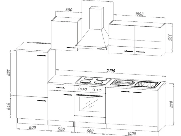 Die Respekta Küchenzeile besteht aus (H x B x T):