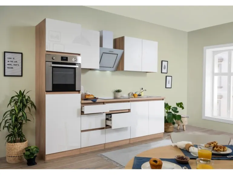 Die Respekta Premium Küchenzeile GLRP270HESW besteht aus (HxBxT):
