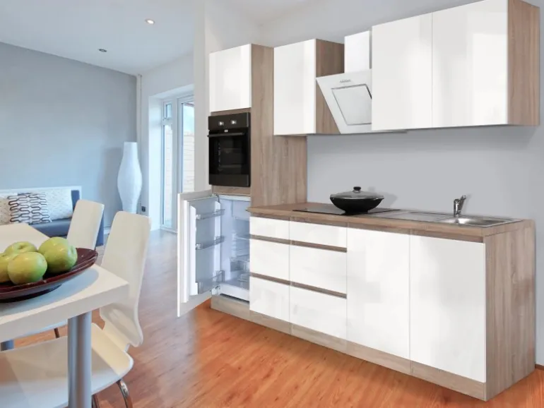 Front Weiß hochglanz und Korpus Eiche-Sägerau Nachbildung
