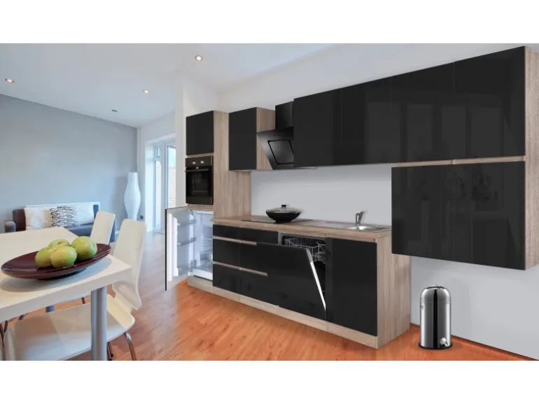 Front Schwarz hochglanz und Korpus Eiche-Sägerau (Nachbildung)
