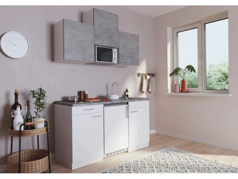 Platzsparende Singleküche im angesagten Beton-Look