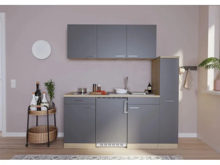 Die 180 cm breite Küchenzeile besteht aus (HxBxT):