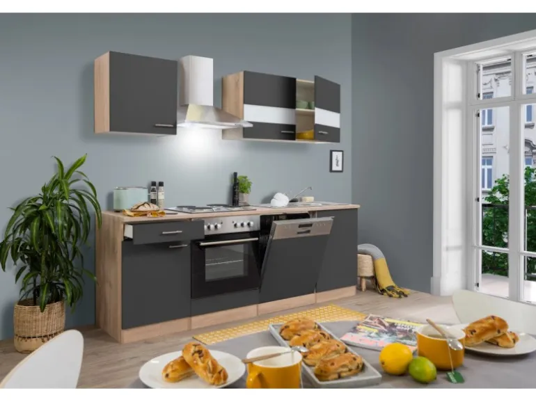 Die Respekta Küchenzeile KB220ESG besteht aus (HxBxT):