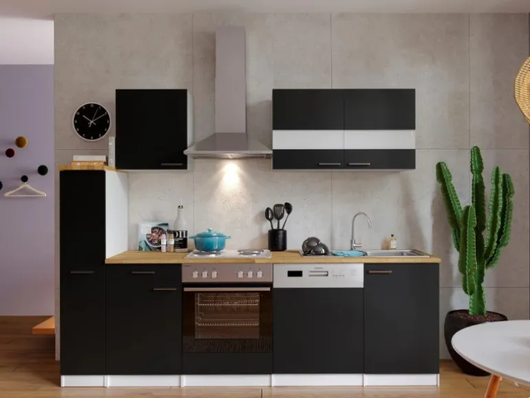 Die Respekta Küchenzeile besteht aus (HxBxT):