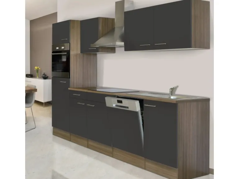 Moderne Küchenzeile in Grau mit Holz-Optik