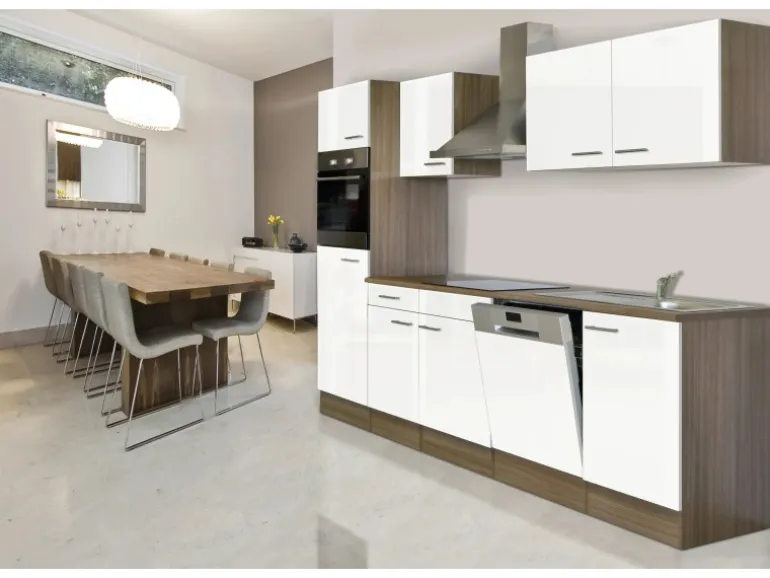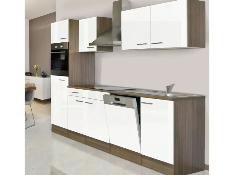 Moderne Küchenzeile in Weiß mit Holz-Optik