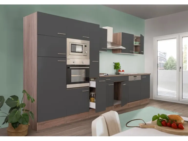 Die Respekta Küchenzeile besteht aus (H x B x T):