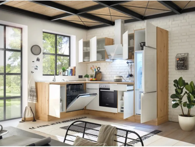 Mit Einbau Herd-Set EEK: A mit rahmenlosem Glaskeramikkochfeld und moderner Schräghaube EEK: A