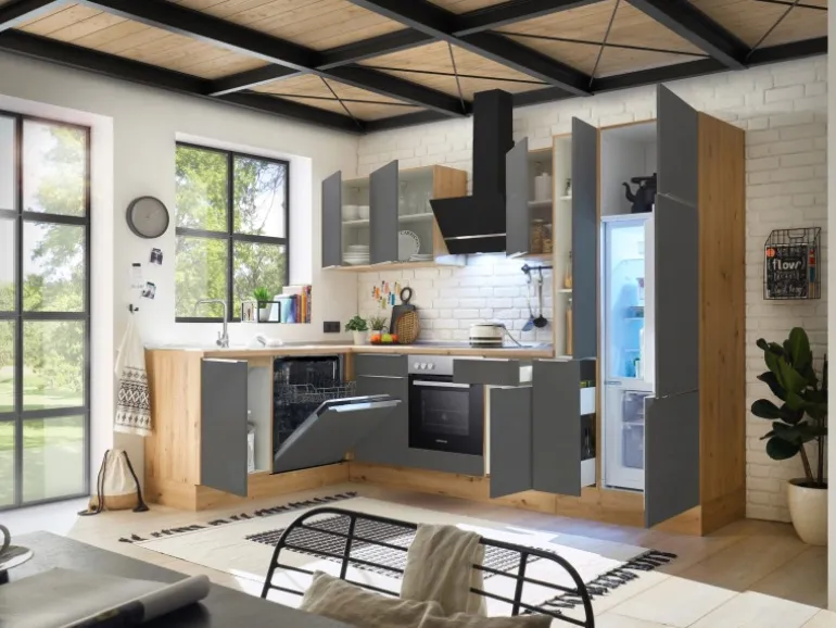 Mit Einbau Herd-Set EEK: A mit rahmenlosem Glaskeramikkochfeld und moderner Schräghaube EEK: A
