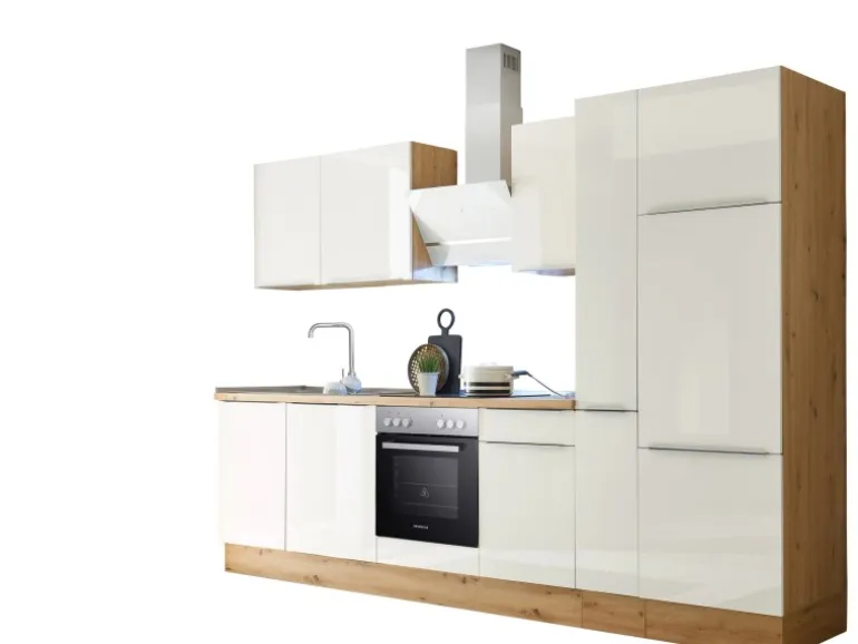 Mit Einbau Herd-Set EEK: A mit rahmenlosem Glaskeramikkochfeld und moderner Schräghaube EEK: A
