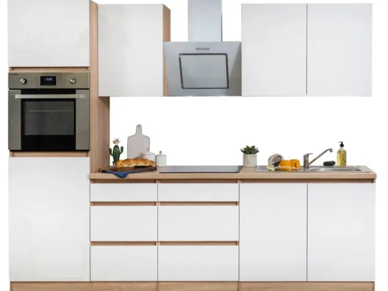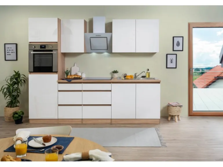 Die Respekta Premium Küchenzeile LBGLRP270HESW besteht aus (H x B x T):