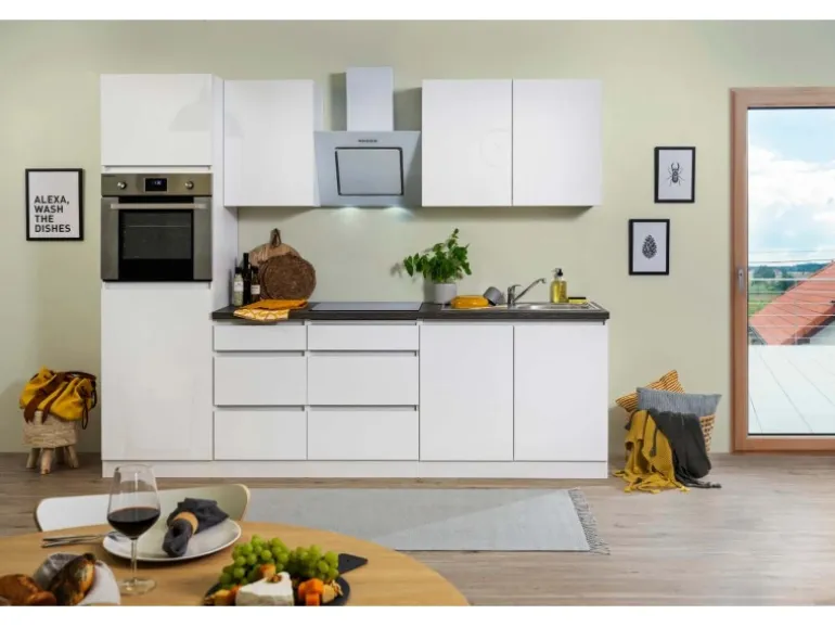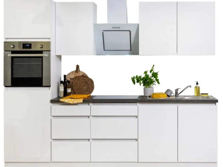 Die Respekta Premium Küchenzeile LBGLRP270HWW besteht aus (H x B x T):