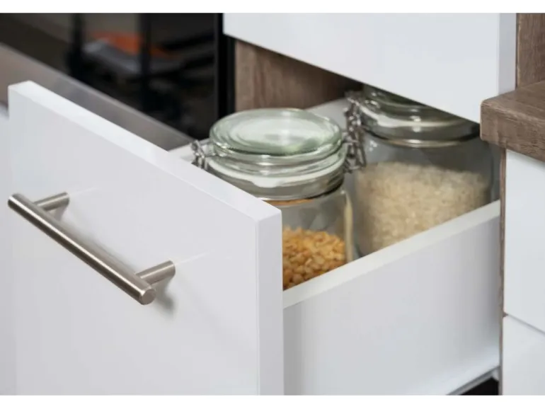 Front Weiß Seidenglanz, Korpus Eiche York (Nachbildung)