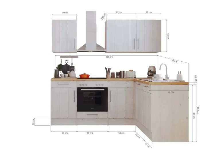 – 1 Eckunterschrank mit Schublade, davon ca. 95 cm Nutzfläche 110 cm