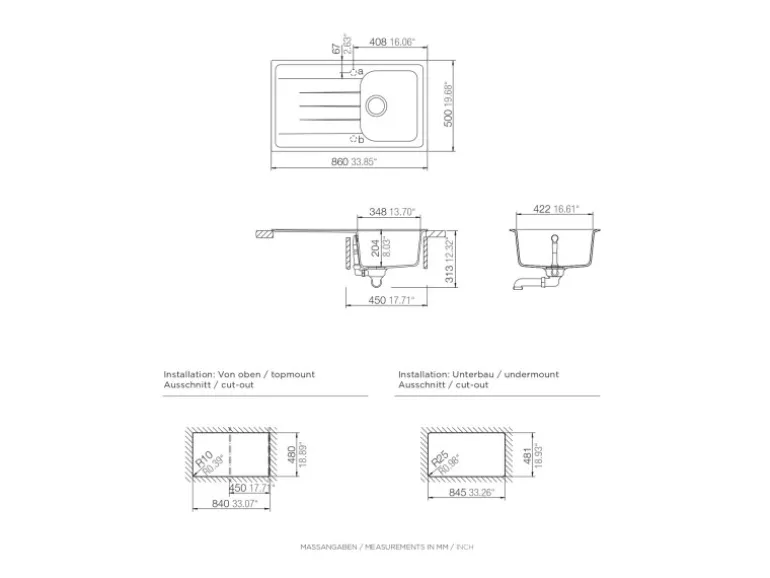 – Maße Spülbecken 42,2 cm x 34,8 cm, Beckentiefe: ca. 20,4 cm