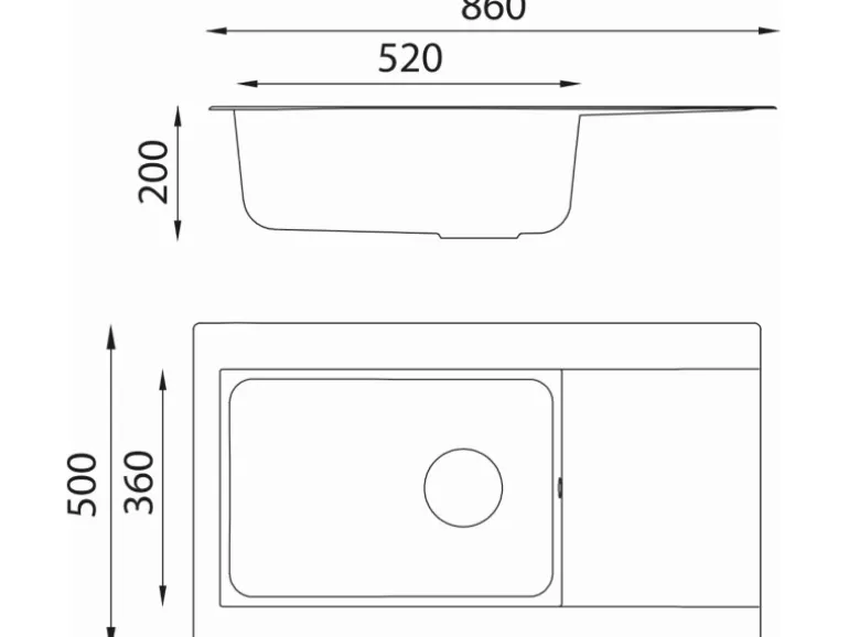 Maße Spülbecken 36 x 52 cm, Beckentiefe: 22 cm