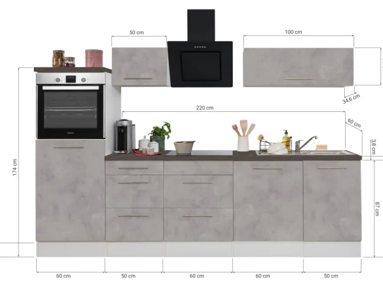 Die Respekta Premium Küchenzeile 280 cm besteht aus: