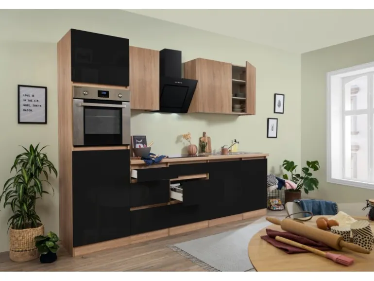 Inkl. vollintegriertem Einbau-Geschirrspüler(EEK: E) und Einbauspüle aus Edelstahl mit Ab – und Überlaufgarnitur