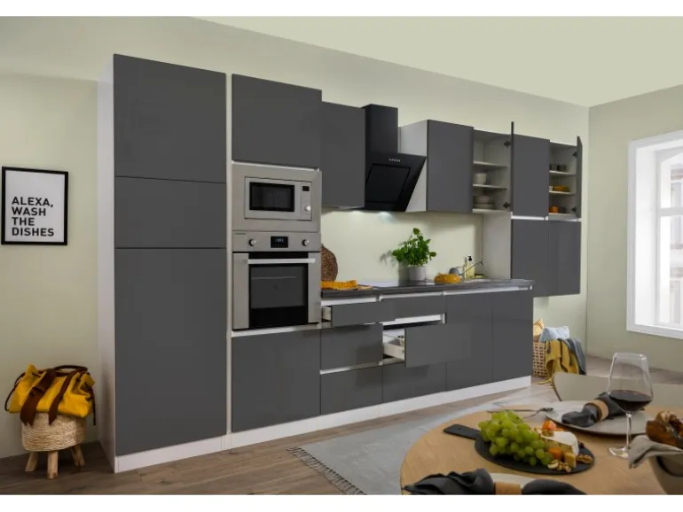 Die Respekta Küchenzeile besteht aus (H x B x T):