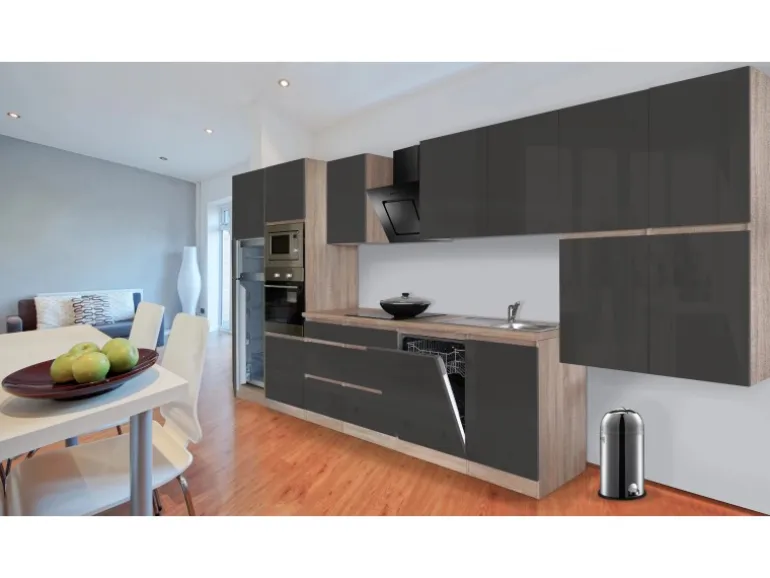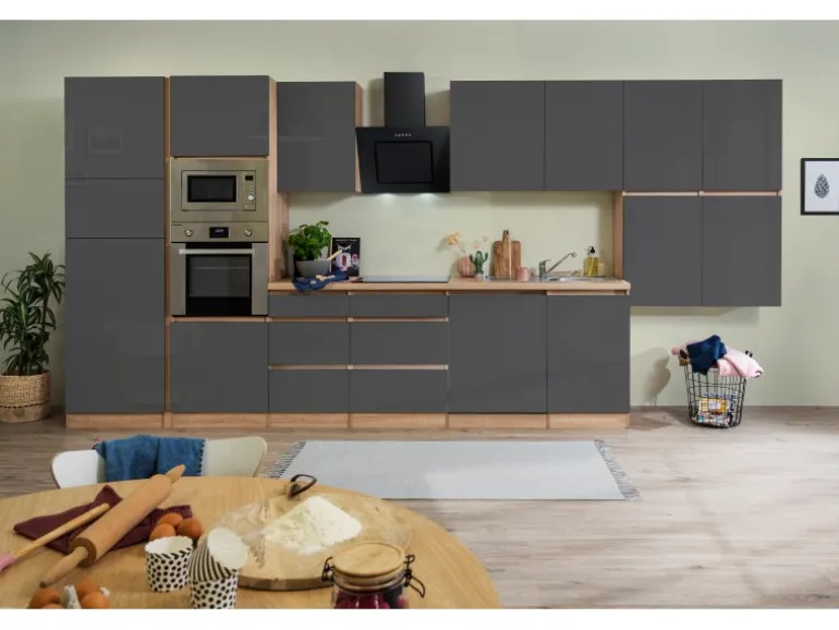 Front Grau Hochglanz und Korpus Eiche Sägerau Nachbildung