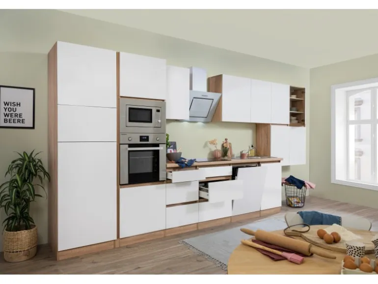Front Weiß Matt und Korpus Eiche Sägerau Nachbildung