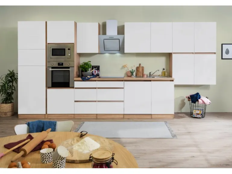 Die Respekta Küchenzeile besteht aus (H x B x T):
