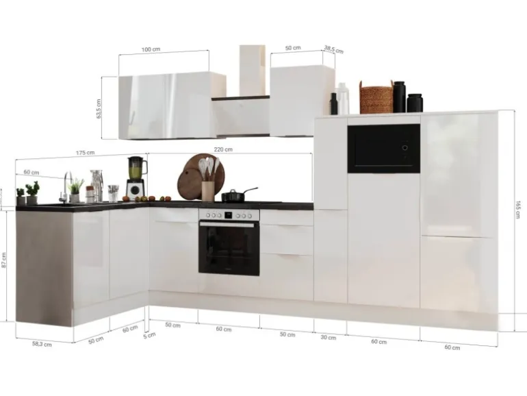 1 Eckunterschrank mit Nutzfläche von ca. 100 cm, 110 cm
