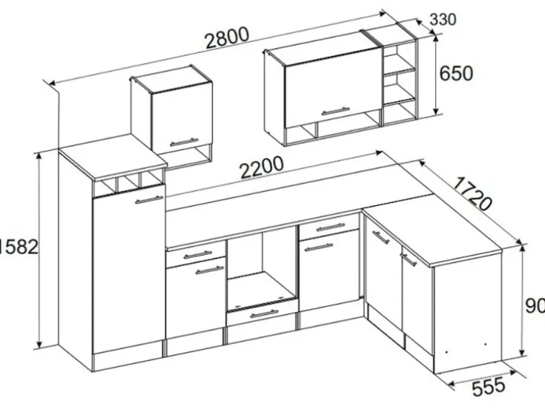 Die Respekta Küchenzeile eignet sich mit ihren Abmessungen von 280 x 172 cm ideal für Familien. Bestehend aus unter anderem je einem 50 cm und einem 80 cm breiten Hängeschrank, einem Herdumbauschrank mit Klapptür und einem Unterschrank mit Schublade bietet diese Küche ausreichend Platz für all Ihre Küchenutensilien.