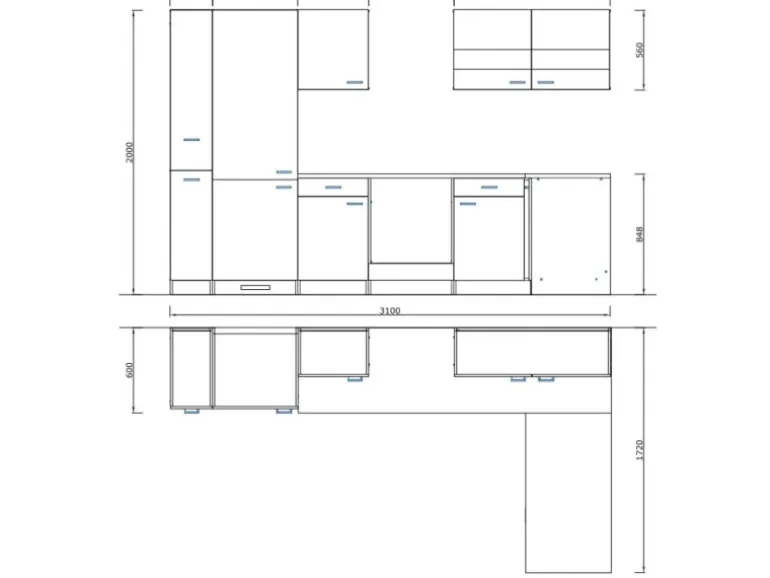 Mehrere Unter- und Oberschränke bieten genügend Platz für Ihre Küchenutensilien und Vorräte. Der praktische Apothekerschrank ist von beiden Seiten zugänglich und schafft mit einer Breite von 30 cm viel übersichtlichen Stauraum für Vorräte und Gewürze. Die harmonisch gestaltete Küche lässt sich ganz nach Ihrem Geschmack wechselseitig aufbauen und ist dank ihres platzsparenden Konzepts auch ideal für kleinere Räume geeignet. Alle Holzteile sind zerlegt und eignen sich dank einer detaillierten Aufbauanleitung zur einfachen Selbstmontage.