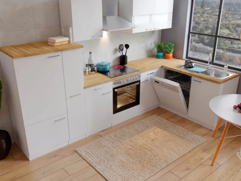 Küchenzeile mit platzsparender Über-Eck-Lösung