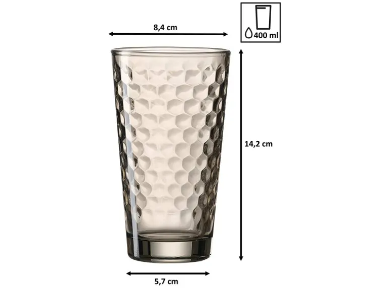 Die Longdrinkgläser der FAVO-Serie überzeugen mit ihrem XL-Volumen, das perfekt für erfrischende Getränke wie Cocktails oder Säfte geeignet ist. Die markante Wabenstruktur sorgt nicht nur für einen modernen Look, sondern auch für eine angenehme Haptik. Diese Gläser setzen jedes Getränk stilvoll in Szene und passen perfekt zu jeder Tischdekoration