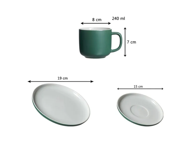 Teller 19 cm, Untertasse 15 cm, Tasse 240 ml