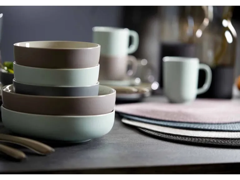 „Jaspers“ formaler Purismus wird durch die feinfühlige Textur- und Farb-Gestaltung stringent abgerundet: Innen- und Oberseiten der Geschirrteile sind, wie man es kennt, mit einer Glanzglasur veredelt, Außen- und Unterseiten dagegen mit einer eher unüblichen Mattglasur, die mit ihrer verhaltenen Ausstrahlung und ihrer warm-angerauten Soft-Touch-Haptik das unangepasste Look & Feel von „Jasper“ wesentlich prägt.