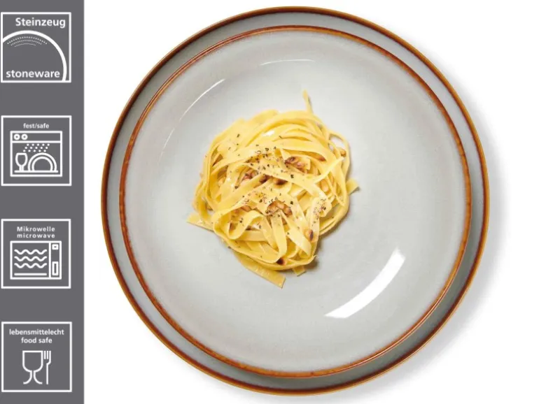 Enthalten: 6x Speiseteller (27,5 cm), 6x Suppenteller (23 cm) und 6x Dessertteller (20,5 cm)