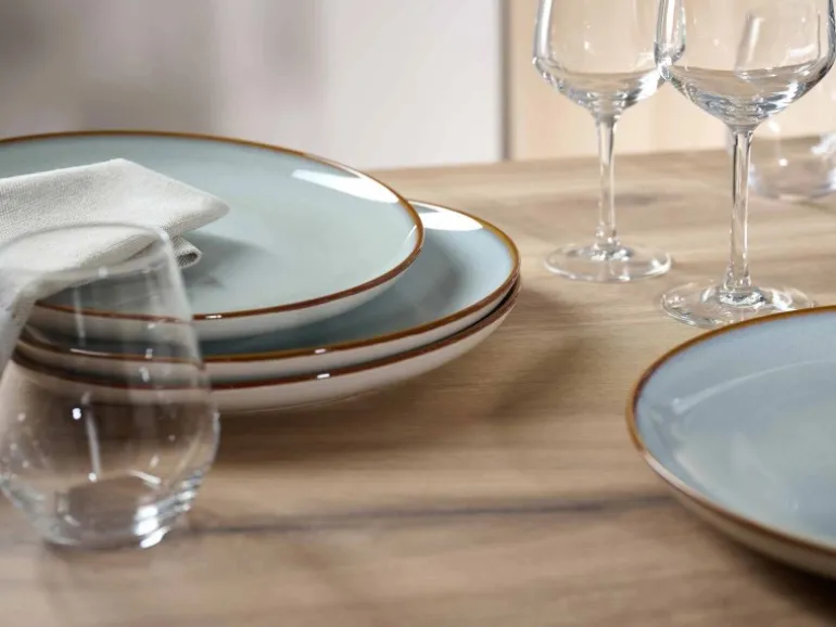 Mediterrane Lebensart: Mit seinem kultiviert rustikalen Look bietet das Teller-Set portofino Speisen einen zeitgemäßen Rahmen. Dank der antikweißen Reaktivglasur, die während des Brennvorgangs individuelle Farbverläufe und Strukturen entstehen lässt, gleicht – wie bei traditioneller Handwerkskunst – kein Geschirrteil exakt dem anderen.
