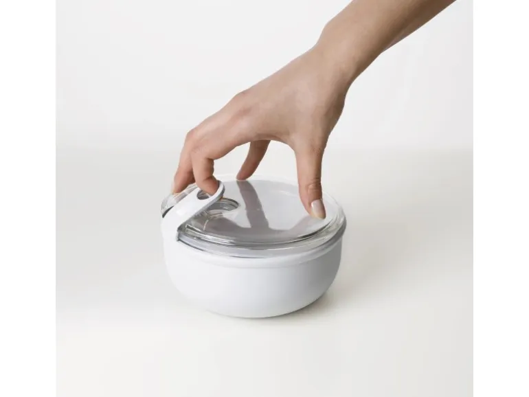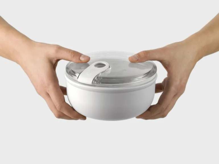 Die Transparenz des Deckels erlaubt es, den Inhalt zu sehen, ohne die Box öffnen zu müssen. Dank des schönen Designs der Box kann sie auch direkt auf dem Tisch als Schale verwendet werden. Zum Aufwärmen der Speisen kann die Box ohne Deckel in die Mikrowelle gestellt werden. Sowohl der Deckel als auch die Box sind für die Spülmaschine geeignet