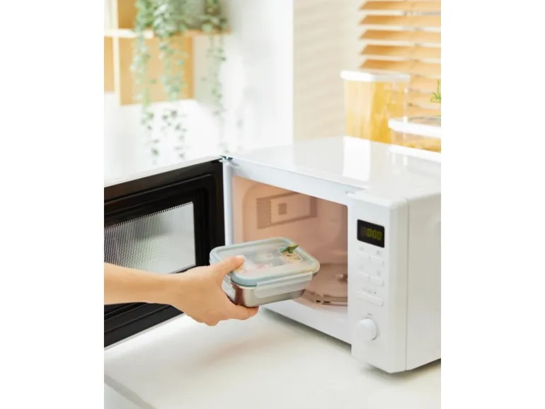 Die rostfreien Unterteile aus Metall mit dichtem Kunststoffdeckel von Rotho sind ideal, um Speisen mitzunehmen, denn der Deckel ist 100 % luft- und wasserdicht. Das Metall-Unterteil hat einen Temperaturanwendungsbereich von – 20 °C bis + 400 °C und kann somit genutzt werden, um Speisen im Kühlschrank frischzuhalten und direkt in der Mikrowelle oder dem Ofen zu erwärmen. Der Deckel sowie das Unterteil sind spülmaschinengeeignet einfach zu reinigen. Der Deckel ist aus Kunststoff hergestellt.