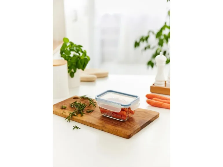 Dank des 100 % dichten Deckels ist die Dose perfekt geeignet, um Speisen überallhin mitzunehmen – egal ob zur Arbeit, zum Sport oder auf einen Ausflug. Durch den bewährten Sicherheitsverschluss mit Silikondichtung sind Ihre Speisen optimal geschützt und absolut wasser- und luftdicht verpackt. Bei Nichtgebrauch lassen sich die Dosen platzsparend ineinander stapeln und schnell verstauen.