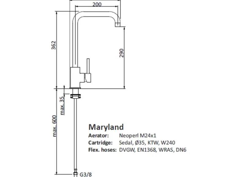Die Sanicomfort Küchenarmatur Maryland ermöglicht durch den schwenkbaren Auslauf in HU-Form mit einer Auslaufhöhe von 290 mm maximale Flexibilität. Die Neoperl M24x1 Durchflussregulierung sorgt dabei für präzise Anpassung. Die Küchenarmatur kommt mit einer Ø 35 mm Kartusche und einem G 3/8 Anschluss. Dank Edelstahl-gebürsteter Oberfläche wird die Wertigkeit dieses Produktes unterstrichen.