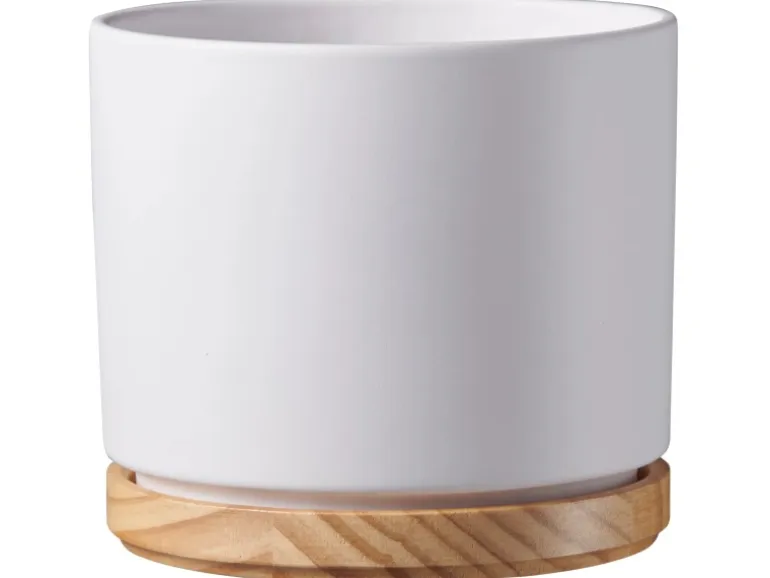 Scheurich Übertopf mit Holzuntersetzer 799 Ø 19 cm Weiß Matt