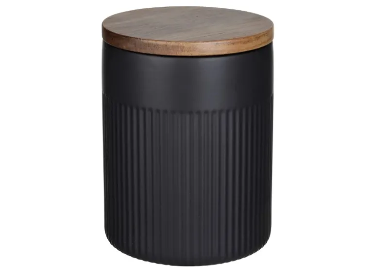 Elegante Vorratsdose: Schwarze Keramik mit Akazienholz-Deckel