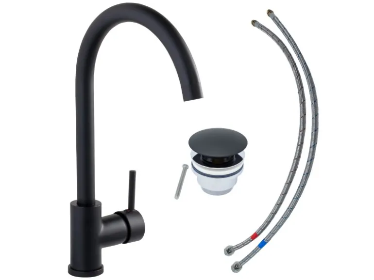 Die Farbe Mattschwarz verleiht dem Modell einen auffälligen und modernen Look, der ideal zu zeitgemäßen Badezimmereinrichtungen passt. Der Auslauf mit geschwungener C-Form ist zudem schwenkbar und erhöht so die Flexibilität am Waschplatz.