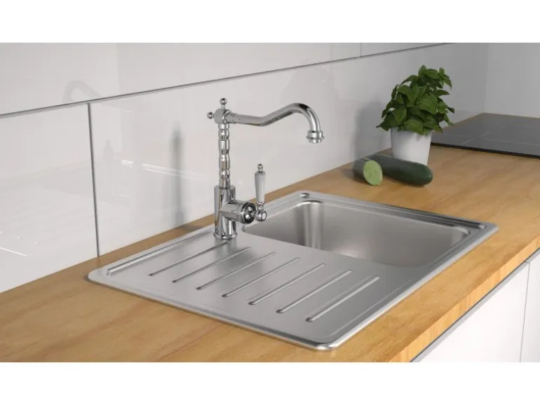 Die elegante Schütte Spülbeckenarmatur Oldystyle ist mit dem außergewöhnlichen Design und nostalgischen Akzenten ein Highlight in jeder Küche. Die Standarmatur mit hohem Bogenauslauf und 360° Schwenkbereich sorgt für einen komfortablen Aktionsradius. Die Hochdruck-Armatur ist mit einer geräuscharmen, auswechselbaren Kartusche mit langlebigen, keramischen Dichtungen zur präzisen Regelung der Durchflussmenge und der Wassertemperatur ausgestattet. Dank der Cold-Start-Funktion wird bei Hebel-Mittelstellung nur der Zufluss von Kaltwasser ermöglicht und Sie sparen Energie. Zudem verfügt die Armatur über einen Kalt- und einen Warmwasseranschluss und wird inklusive zwei Flexschläuche geliefert. Strenge Qualitätskontrollen und hochwertige Materialien, die den Bestimmungen der deutschen Trinkwasserverordnung entsprechen, gewährleisten hohe Sicherheit und beste Wasserqualität. Dank des mitgelieferte Montagesets und der leicht verständlichen Montageanleitung gelingt die Installation im Handumdrehen.